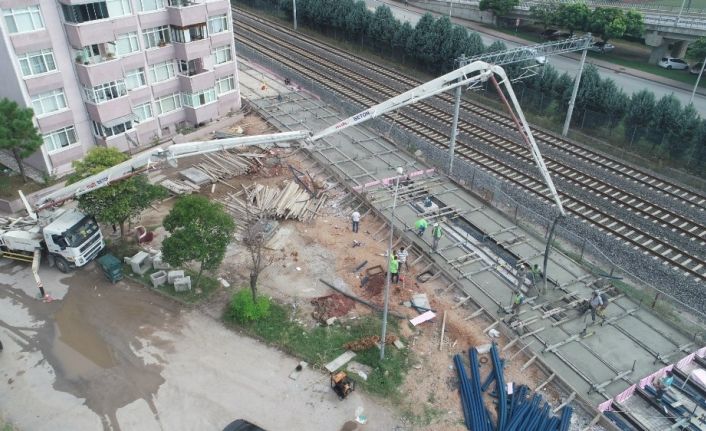 Kocaeli’de Kuruçeşme Tramvay Hattı’nın ikinci kısım çalışmalarında, ray beton dökümleri yapılıyor.