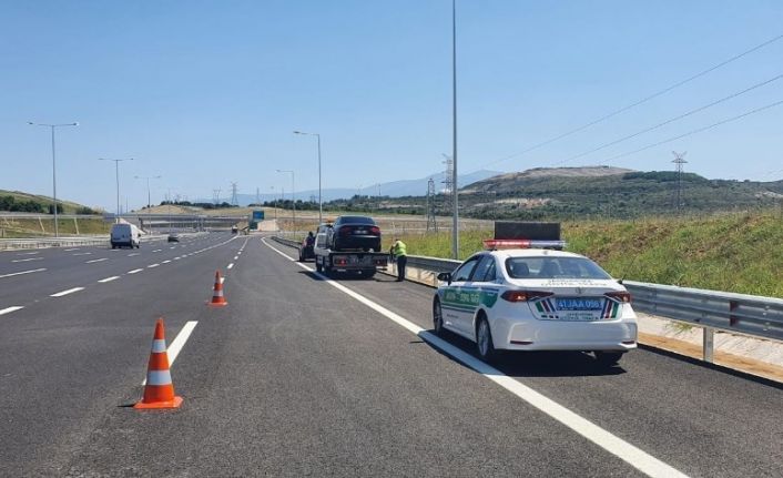 Kurban Bayramı nedeni ile yollarda oluşan yoğunluğun azaltılması için geçici olarak trafiğe açılan Kuzey Marmara Otoyolu’nda arızalanan araçlar Jandarma Otoyol Trafik Timleri tarafından çekicilerle anında tahliye ediliyor.