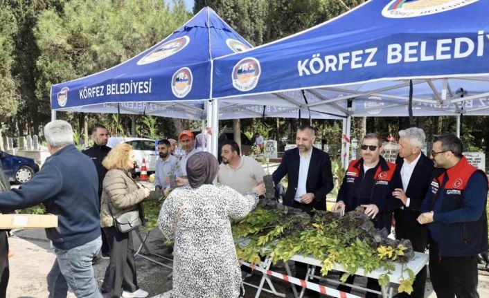 Körfez Belediyesi, Ramazan Bayramı arifesinde mezarlıkları ziyaret eden vatandaşlara fidan ve çiçek dağıttı.