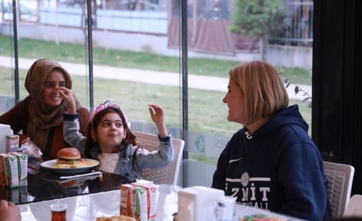 Depremin yaralarını sarmak amacıyla çalışmalarını sürdüren İzmit Belediye Başkanı Fatma Kaplan Hürriyet, deprem bölgesinden İzmit’e gelen vatandaşlarla İzmit Belediyesi Sosyal Tesisi Gülümse Kafe’de bir araya geldi. Başkan Hürriyet ayrıca, minik Ecrin’e doğum günü sürprizi yaptı. 7’nci yaşına İzmit’te giren ve doğum günü sürprizi yapılan Ecrin, pastasını Başkan Hürriyet ile beraber kesti. Sürprizden dolayı çok mutlu olan Ecrin ve ailesi, İzmit Belediye Başkanı Fatma Kaplan Hürriyet’e teşekkür etti.