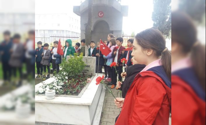 Körfezli minik öğrenciler, Körfez Asri Mezarlığı içerisinde bulunan Şehitliği ziyaret ederek dualar etti.