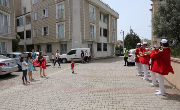 Darıca Belediyesi moral otobüsü, sokak sokak gezerek bando eşliğinde 19 Mayıs coşkusunu evlerinde olan vatandaşlara yaşatıyor.