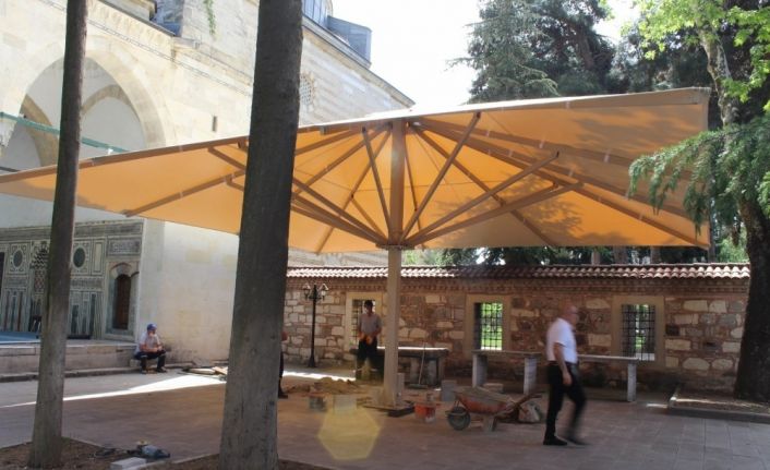 Gebze Belediyesi tarafından Mustafa Paşa Cami yönetiminin talebi doğrultusunda musalla taşının bulunduğu alana dev şemsiye görünümlü tente yapıldı.