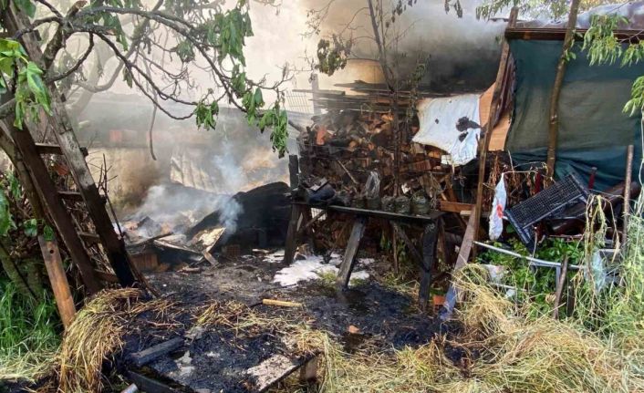 Kocaeli’nin Kartepe ilçesinde çıkan yangında odunluk alev alev yandı.