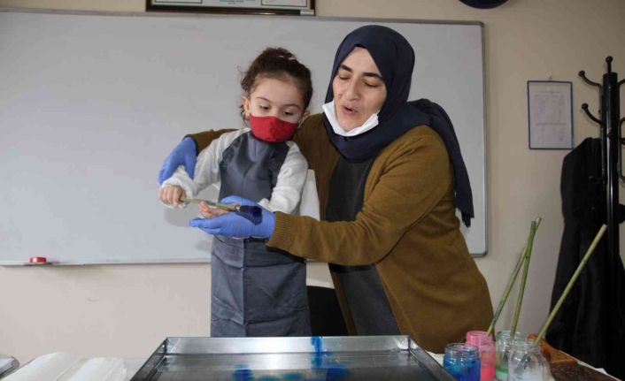 Öğrenciler ebru sanatı ile buluşuyor