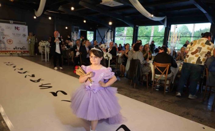 Podyumda ilk yürüyen isim anaokulu öğrencisi Gökçe Dora Işık oldu. Lila renkli kıyafetiyle podyumda yürüyen minik Gökçe, masalarda oturanlara çiçek de bıraktı. 6 yaşındaki Gökçe, izleyenler tarafından alkışlandı.