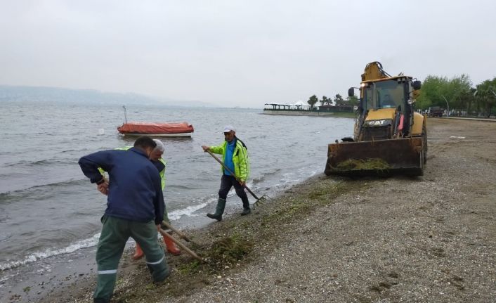 Kocaeli sahil ve plajlarında yıl boyunca devam ettirilen yosun temizliği, korona virüsle mücadele sürecinde de sürdürülüyor.
