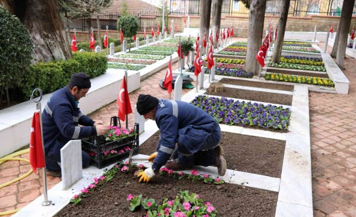Yoğun kar yağışının ardından şehit mezarlarının zarar görmüş çiçeklerinin bakımı ve temizliği yapıldı.
