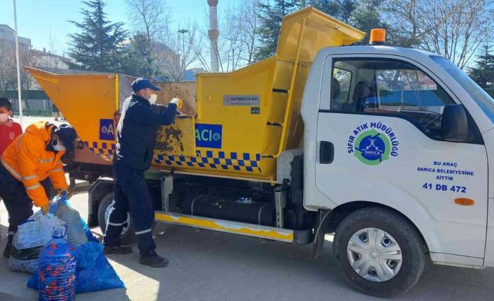 Darıca Belediyesi’nden yapılan yazılı açıklamada, "Darıca Belediyesi olarak sıfır atık projesine destek olmak için canla başla çalışıyoruz. Daha güzel yarınlar için el birliği ile sıfır atık konusunda çalışmalar yapmalıyız. Yeni kurulan Sıfır Atık Müdürlüğü ekiplerimiz okullarımızla işbirliği yaparak okulda biriktirilen geri dönüşüme kazandırılabilecek atıkları toplayarak ülke ekonomimize destek olmak için çalışıyoruz. Okullarımızla birlikte bütün vatandaşlarımızı bu konuda duyarlı olmaya ve destek vermeye davet ediyoruz. Sürdürülebilir kalkınma ilkeleri çerçevesinde atıkların kontrol altına alınması, gelecek nesillere daha temiz ve gelişmiş bir Darıca, yaşanabilir bir Türkiye bırakılması hedefiyle çalışmalarımıza devam edeceğiz" ifadelerine yer verildi.