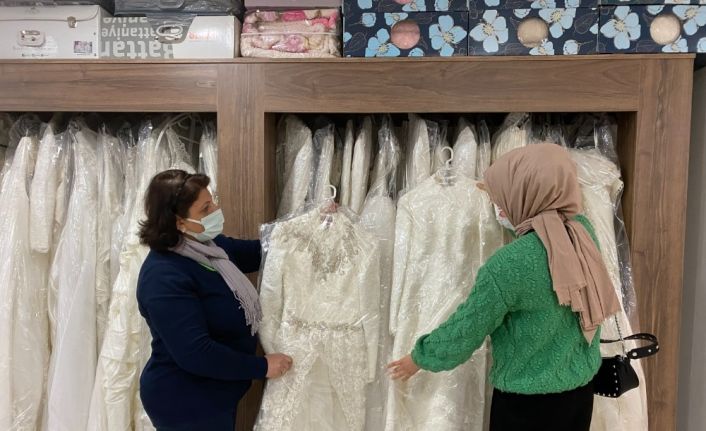 Evlenme kararı alan ihtiyaç sahibi çiftlerin gelinlik, nişanlık ve kına elbiselerini ücretsiz olarak temin edebileceği İzmit Belediyesi Dost Eller Giysi Mağazası’nda gelinlik seçimleri ve kiralama başvuruları başladı.