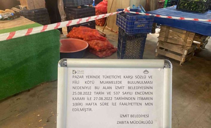 Kocaeli’nin İzmit ilçesinde bulunan Doğu Kışla Pazar Alanı’nda vatandaşa hakaret eden ve fiziksel saldırıda bulunan pazarcı için İzmit Belediyesi zabıta ekipleri ve Kocaeli Seyyar Esnaf ve Pazarcılar Odası tutanak tutarak encümene sevkini sağladı. Daha öncesinde yine aynı esnafa hileli fiyat etiketi ve yanıltıcı ifade kullandığı için Belediye Encümeni tarafından cezai işlem uygulandığı öğrenildi. 12 Temmuz 2012 tarih ve 28351 sayılı Pazar Yerleri Hakkında Yönetmelik gereğince bir takvim yılı içinde iki kez cezai işlem uygulanan pazarcıya belediye encümeni tarafından bir haftalık kapatma cezası verildi.