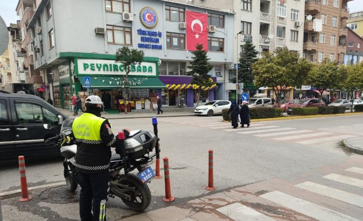 Kocaeli’nin Gölcük İlçesi Albayburak ve Previze Caddesi üzerindeki yaya geçitlerinde Polis ekiplerince yapılan uygulamalarda yayalara yol vermeyen sürücülere cezai işlem uygulandı.
