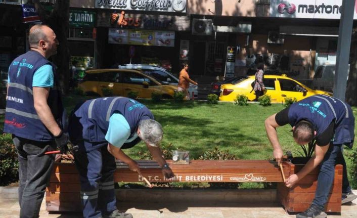İzmit Belediyesi Fen İşleri Müdürlüğü ekipleri kendi imkanlarıyla ürettiği ahşap bankları modern ve kullanışlı sosyal alan haline gelen Yeni Cuma Parkına monte etti.