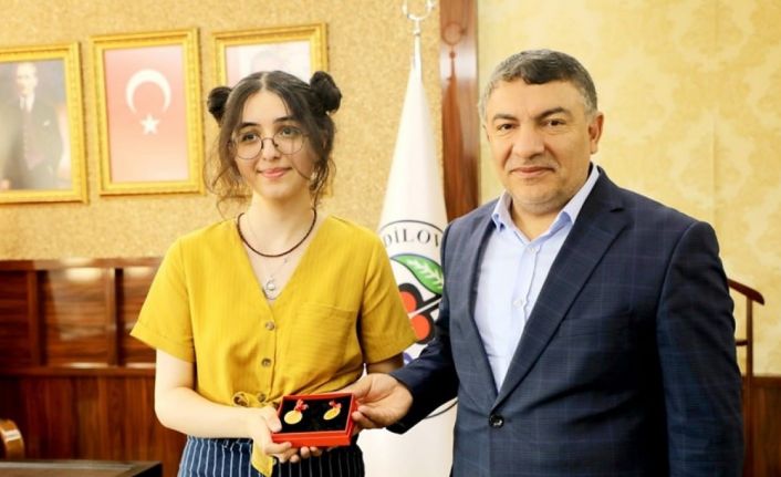 Dilovası Belediye Başkanı Hamza Şayir, YKS Türkiye birincisi olan Zeynep Dila Kuyucu’yu iki tam altın ve eğitim bursu ile ödüllendirdi.