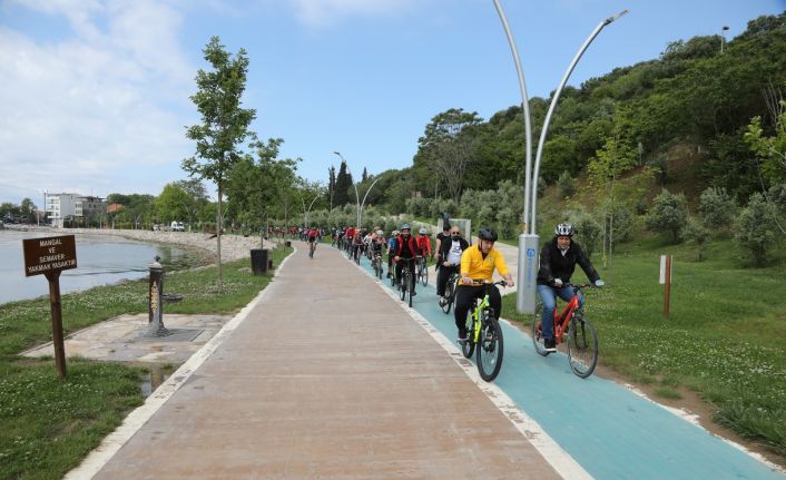 Darıca Sahilinde Dünya Bisiklet Günü kapsamında düzenlenen bisiklet turuna katılan yüzlerce kişi, deniz ve doğa manzarası eşliğinde pedal çevirdi.
