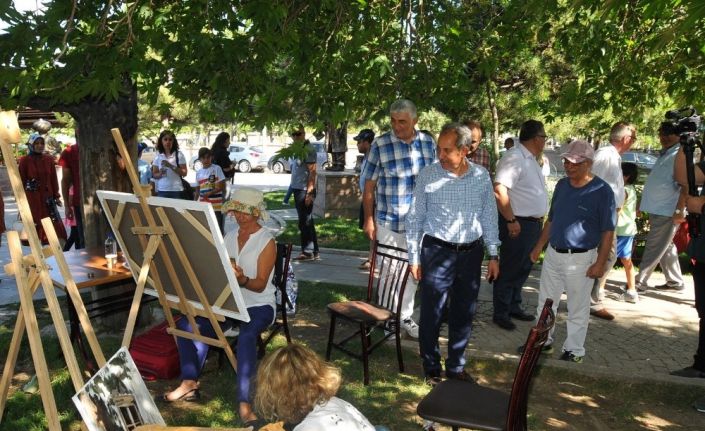 Konya’nın Akşehir İlçe Belediye Başkanı Salih Akkaya, İlçe Emniyet Müdürü Mustafa Akdemir, İlçe Milli Eğitim Müdürü A. Barbaros Topaloğlu, Akşehir Belediyesi Kültür ve Sosyal İşler Müdürü İbrahim Öncel, Müze Müdürü Sevcan Karapıçak ile birlikte Akşehir Gülmece Parkında atölye çalışmaları yapan Sanata Saygı Platformu üyelerini ziyaret ederek yaptıkları çalışmalar hakkında Platform Başkanı Mustafa Erol’dan bilgiler aldı. Sanatçılara yaptıkları çalışmalar için tebriklerini sunan Başkan Akkaya, şenlik sonunda biten ürünleri görmenin ve sergilemenin kendilerine mutluluk vereceğini vurguladı.