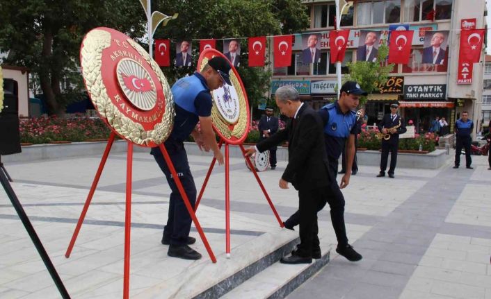 Cumhuriyet Meydanı’ndaki törende; Kaymakamlık, Garnizon Komutanlığı ve Belediye Başkanlığı çelenklerinin Atatürk Anıtı’na sunulmasından sonra saygı duruşunda bulunuldu ve İstiklal Marşı okundu. Akşehir Garnizon Komutanı Albay Tolga Yuvalı tarafından günün anlam ve önemini belirten bir konuşma yapıldı. Yuvalı yaptığı konuşmada, “Bugün her karışı şehit kanıyla sulanmış, mukaddes vatan topraklarının savunulması uğruna, canlarını feda etmeyi göze alarak gazilik unvanına erişen kahramanlarımızın kıvanç gününü kutlamanın derin heyecanını yaşıyoruz” dedi.