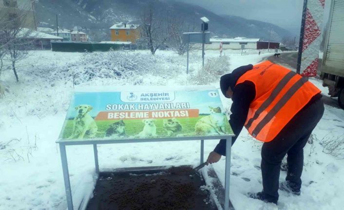 Akşehir Belediyesi Temizlik İşleri Müdürlüğüne bağlı ekipler, kar yağışı altında sokak hayvanlarının yaşamlarını sürdürebilmesi için mama, yiyecek ve yemleri şehrin muhtelif yerlerinde oluşturulan beslenme noktalarına bırakıyor.
