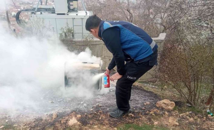 Konya’nın Akşehir ilçesinde GSM vericilerine bağlanan jeneratör alev alarak yanmaya başladı. Zabıtanın zamanında müdahalesiyle jeneratör söndürülürken, alevlerin de ormanlık alana sıçraması önlenmiş oldu.