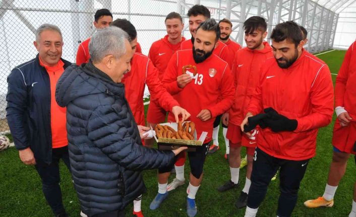 Konya’nın Akşehir İlçe Belediye Başkanı Salih Akkaya, çalışmalarını sürdüren Akşehirspor’un antrenmanını ziyaret ederek oyunculara tatlı ikram etti.