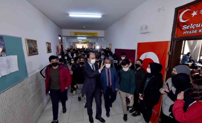 Konya Büyükşehir Belediye Başkanı Uğur İbrahim Altay, Şehit Azam Güdendede Anadolu Lisesi ile Mehmet Hanife Yapıcı Anadolu Lisesi’ni ziyaret ederek, öğrencilerle ve öğretmenlerle bir araya geldi.