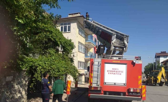 Konya’nın Beyşehir ilçesinde itfaiye ekipleri çatıda mahsur kalan bir kediyi kurtarmak için seferber oldu.