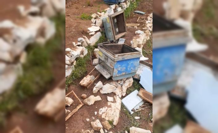 Konya’nın Bozkır ilçesinde ayılar bir arıcının kovanlarına zarar verdi.