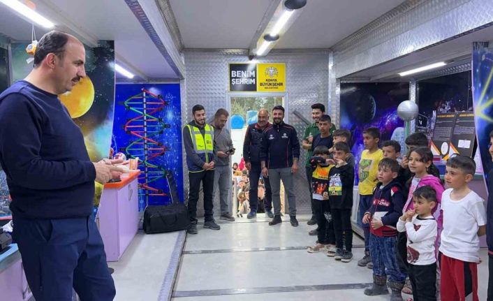 Depremzede çocuklar Konya Büyükşehir’in Bilim Tırında moral buluyor
