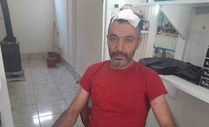 Konya’nın Karapınar ilçesinde dükkanın önünü yıkarken başına kullanılmayan binadan beton parçası düşen esnaf yaralandı.