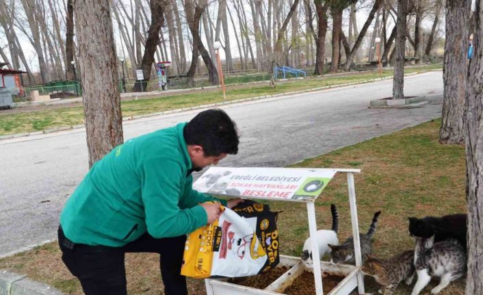 Konya’nın Ereğli İlçe Belediyesi, kurulan Sokak Hayvanlarını Besleme Odakları’na ve muhtelif noktalara hayvanların mama ve su ihtiyaçlarını bırakıyor.