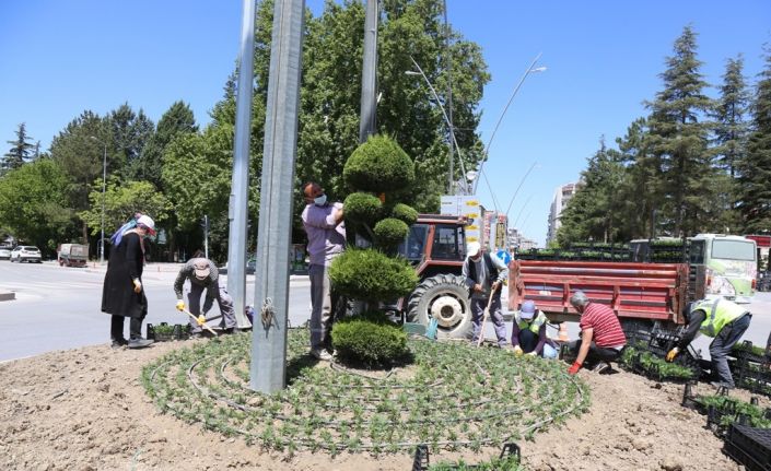 Konya’nın Ereğli İlçe Belediyesi Park ve Bahçeler Müdürlüğü ekipleri, kavşaklar ve refüjlerde çiçeklendirme çalışmaları gerçekleştiriyor.