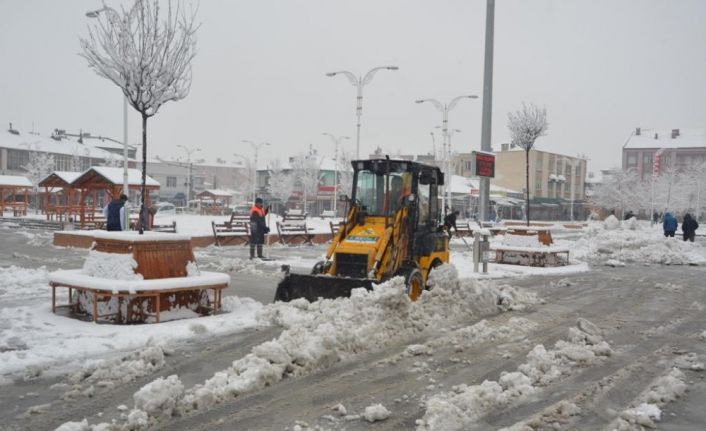 Konya’nın Ereğli İlçe Belediyesi kar temizleme ekipleri gece geç saatlerde başlayan kar yağışının hayatı olumsuz etkilememesi adına vakit kaybetmeden çalışmalarına başladı.