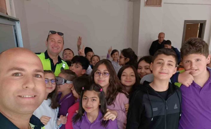 Konya’nın Ereğli ilçesinde trafik polisleri tarafından Dumlupınar Ortaokulunda düzenlenen programda öğrencilere trafik eğitimi verildi.