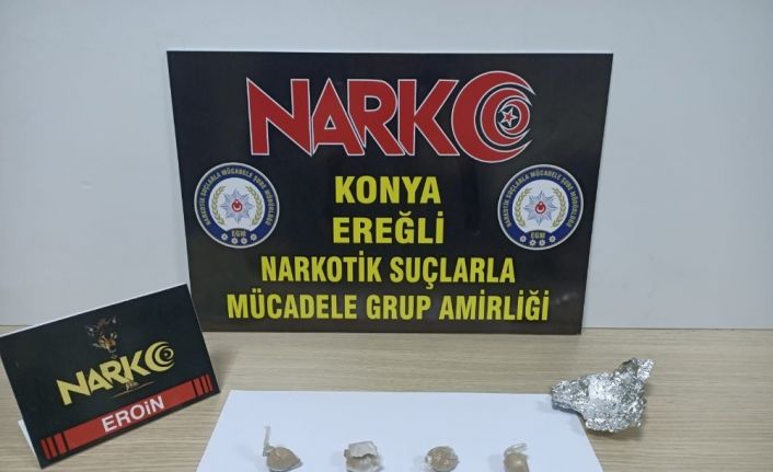 Konya’nın Ereğli ilçesinde, uyuşturucu ile mücadele kapsamında 4 kişiye işlem yapılırken, 10 gram eroin maddesi ve 8 uyuşturucu hap maddesi ele geçirildi.