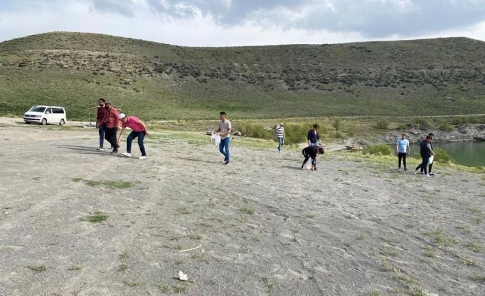 Konya’nın Karapınar ilçesinde bulunan Acıgöl’de bir grup genç göl çevresinde bulunan çöpleri toplayarak temizlik yaptı.