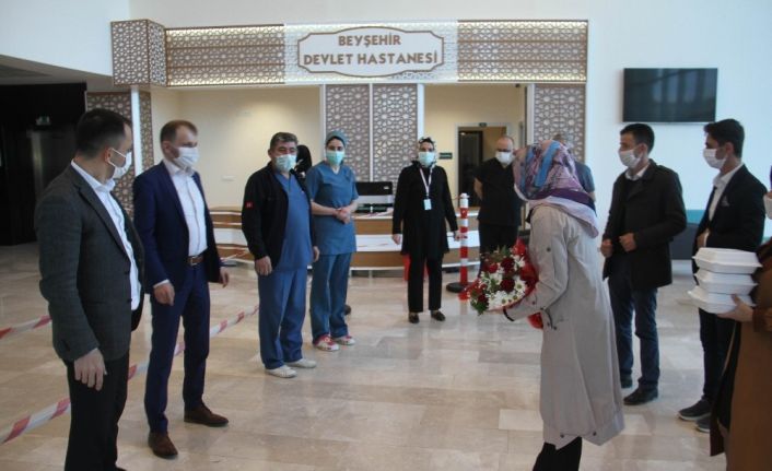Konya’nın Beyşehir ilçesinde yaşayan kadınlar, sağlık çalışanlarına evlerinde hazırladıkları kurabiye, kek ve poğaçalardan ikram edip çiçek vererek teşekkür etti.