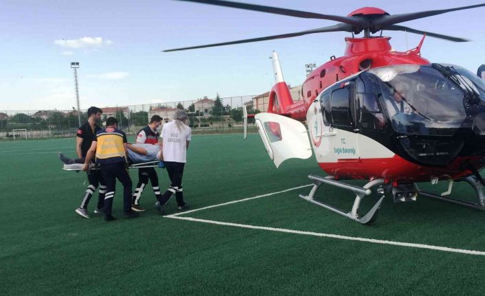 Konya’nın Kulu ilçesinde kalp krizi geçiren hasta ilk müdahalesinin ardından helikopter ambulansıyla hastaneye sevk edildi.