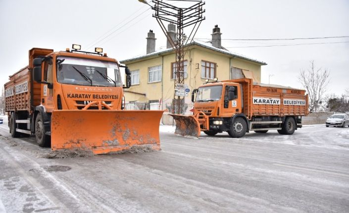 Kar yağışının ilk saatlerinden itibaren koordineli bir şekilde karla mücadele çalışmalarına başlayan Karatay Belediyesi Fen İşleri Müdürlüğü ekipleri, ilçe genelinde kar küreme ve tuzlama çalışmaları gerçekleştirdi. Karatay Belediyesi; solüsyon, tuzlama ve kaldırım temizleme ekipleri ile yoğun kar yağışının ardından vatandaşların mağdur olmaması için her türlü tedbiri de aldı. Bu kapsamda merkez cadde ve yollardan başlatılan kar temizleme çalışmaları tüm ilçeye yayılarak sürdürülüyor. Kepçe ve greyderlerle karlar temizlenirken bir yandan da buzlanmanın önlenmesi için tuzlama çalışmaları yapılıyor. Kar yağışının yolları kayganlaştırması ve buzlanmayı da beraberinde getirmesi neticesinde yaşanabilecek sorunların önüne geçmek için Karatay Belediyesi, tuzlama çalışmalarının yanı sıra kar küreme araçları ve iş makineleri ile sorunlu bölgelere müdahale ediyor.