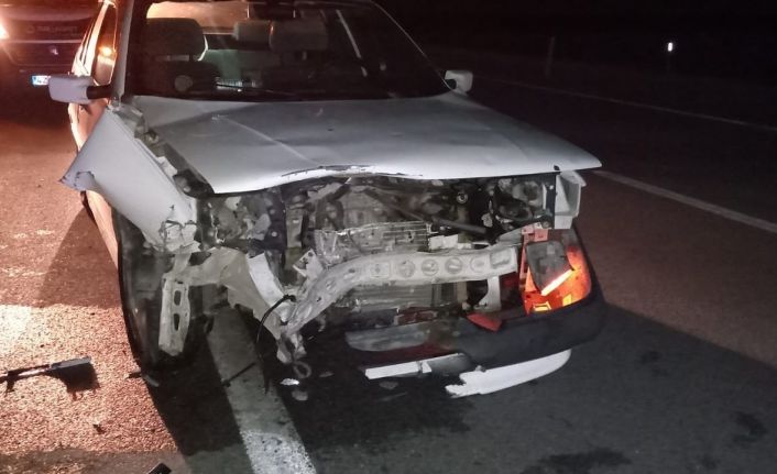 Konya’nın Beyşehir ilçesinde, karayoluna çıkan domuza çarpan otomobilde büyük çapta maddi hasar oluştu.