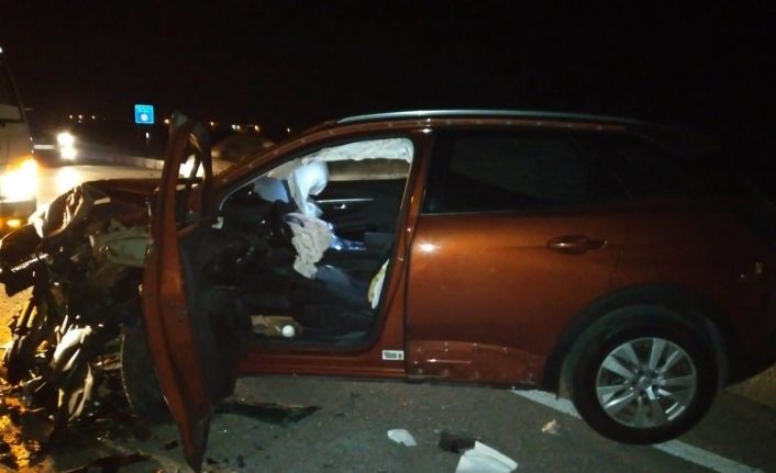 Karşı şeride geçen otomobil tıra çarptı: 1 yaralı