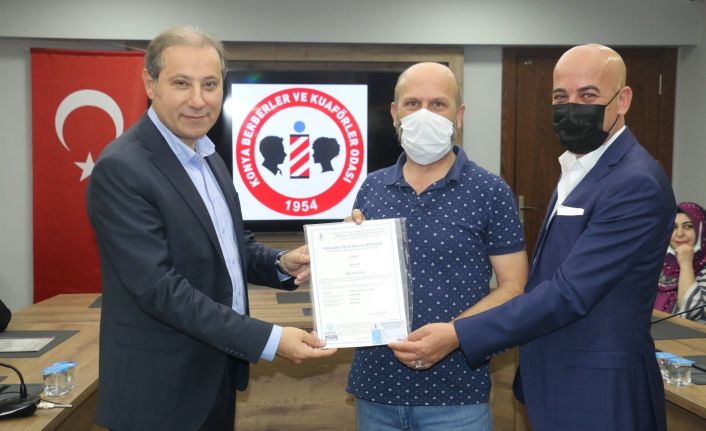 Konya Esnaf ve Sanatkarlar Odaları Birliği’nin (KONESOB) TESK-ESYEM ile yaptığı protokol çerçevesinde kuaförlük branşında Mesleki Yeterlilik Belgesi almaya hak kazanan meslek sahiplerine belgeleri düzenlenen törenle verildi.