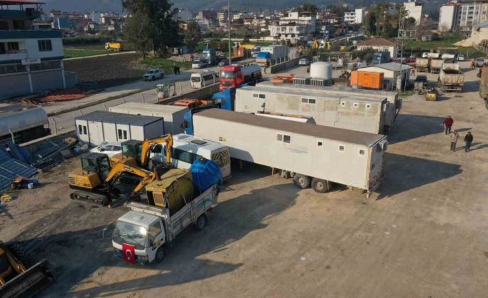 Depremin ilk anından itibaren teyakkuza geçen ve bölgeye verdiği desteğini artırarak sürdüren Konya Büyükşehir Belediyesi, Hatay’da koordinasyonu sağlamak için araç şantiyesi kurdu.