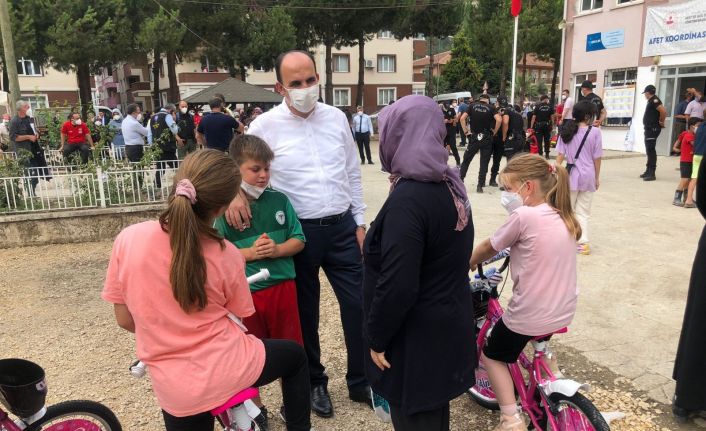 Başkan Uğur İbrahim Altay, “Bozkurt’ta incelemelerimizin ardından Emine Erdoğan Hanımefendi ve Çevre ve Şehircilik Bakanımız Murat Kurum ile birlikte 500 çocuğumuza bisikletlerini teslim ettik, onlarla sevindik. Çocuklar her yerde çok güzel, her yerde çok sevimli. Allah ömürlerine bereket versin. Selin yol açtığı yıkımın izlerini hep birlikte sileceğiz inşallah. Devletimiz her zaman milletimizin yanında” diye konuştu.
