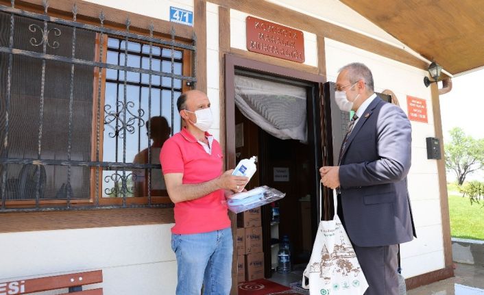 Konya Büyükşehir Belediyesi, korona virüsle mücadele sürecinde etkin görev alan 31 ilçedeki tüm mahalle muhtarlarına dezenfektan, maske ve siperlik desteğinde bulundu.
