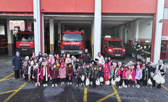 Konya Büyükşehir Belediyesi’nin şehir merkezindeki tüm ilkokul 1. sınıf öğrencileri için düzenlediği teorik ve uygulamalı itfaiye eğitimleri devam ediyor.
