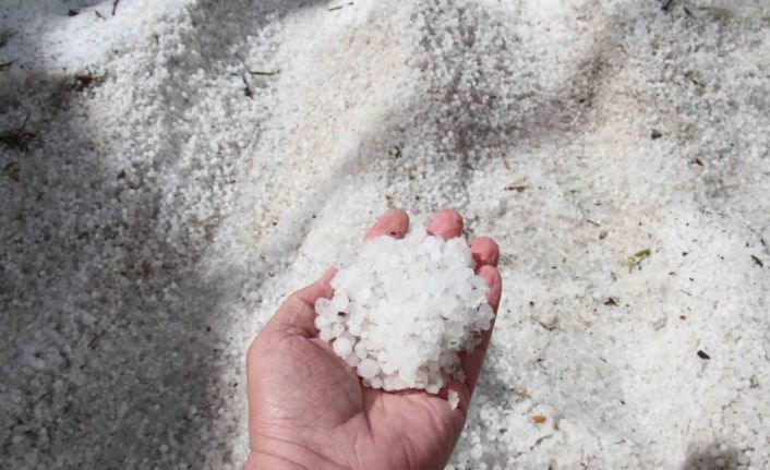Konya’nın Beyşehir ilçesi doluya teslim oldu, dolu tanelerinin oluşturduğu yığınlar gece saatlerinde yolları ve açık alanları kaplayıp beyaza bürünmesine yol açtı.