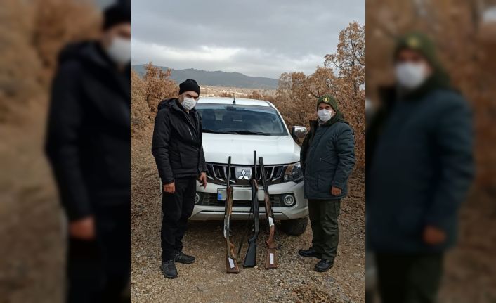 Avcılar hakkında yasal işlem başlatarak idari para cezası kesen ekipler, ele geçirilen ruhsatsız 3 av tüfeğine ise el koydu.