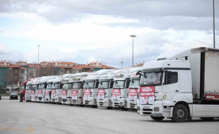 Konya’dan Gazze’ye ulaştırılmak üzere 15 tır insanı yardım malzemesi dualarla yola çıktı.