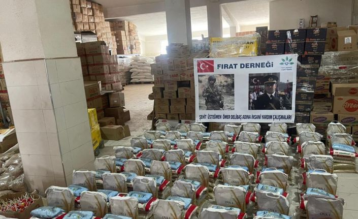 Şehit Üsteğmen Ömer Delibaş adına hazırlanan yardım tırında kuru bakliyat, çeşitli gıda maddeleri, giyim eşyaları, ayakkabı ve temel ihtiyaç malzemeleri bulunuyor.