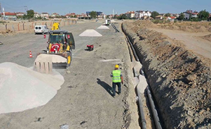 Konya Büyükşehir Belediyesi KOSKİ Genel Müdürlüğü, yapımı devam eden Alparslan Türkeş Caddesine yeni bir su şebeke hattı kazandırıyor.